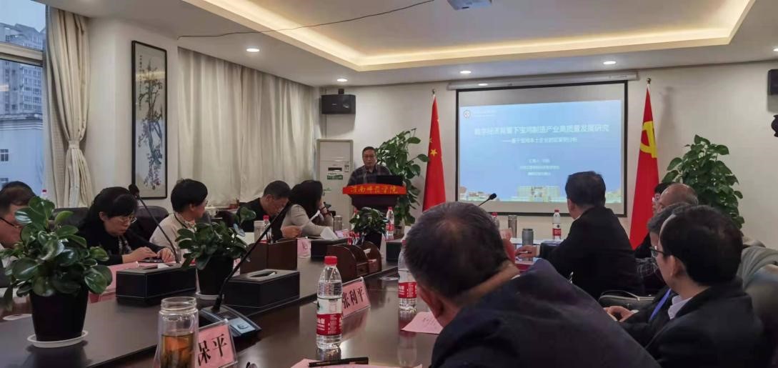 在会议中,先后有10位老师进行了大会学术汇报交流,刘辉教授作了《数字经济背景下宝鸡制造产业高质量发展研究----基于宝鸡本土企业的双案例分析》交流发言。发言以“秦川机床”和“长美科技”2家宝鸡本土装备制造企业为例,应用扎根理论对其进行纵向案例分析和研究,就宝鸡制造企业数字化转型的驱动因素、作用机制和成长绩效演变过程进行了分析探讨,受到与会专家学者的肯定。