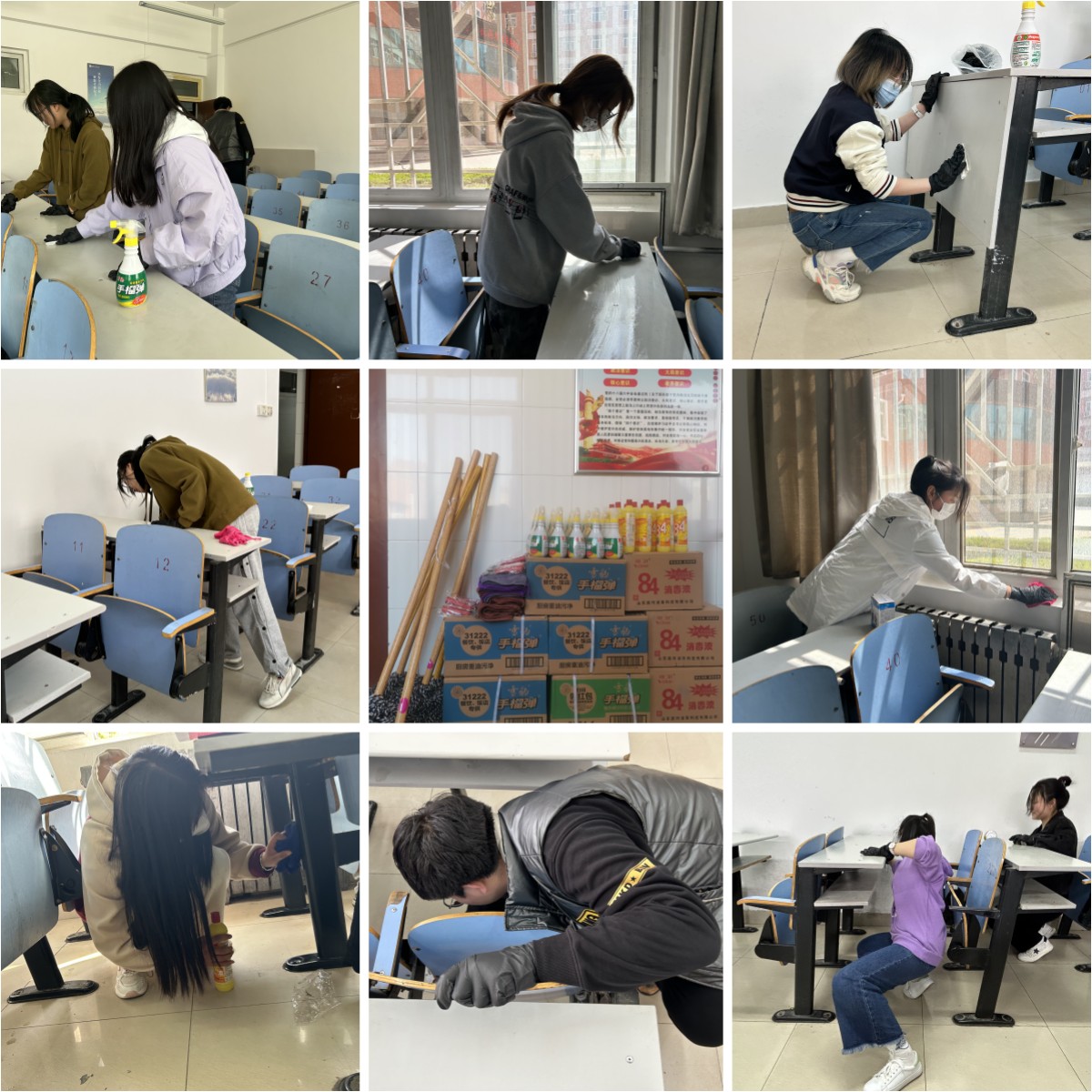 本次主题党日活动根据教室使用及课程安排等情况,划分4个时段进行。同学们分为18个小组,积极投入到不同时段的清扫保洁工作中,大家发扬主人翁精神,团结协作,不怕苦不怕累,认真清扫地面,擦拭桌椅、讲台及黑板,清空桌内垃圾,对教室内外进行彻底地清洁和美化,确保不留卫生死角,经过同学们的共同努力,教室内外环境焕然一新。