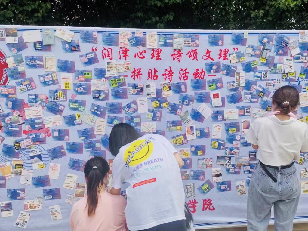为增强老员工自我调适能力,提高心理健康水平和综合素质,促进员工健康成长,公司于6月9日在高新校区服务楼西侧开展了“润泽心理,诗颂文理”拼贴诗活动。