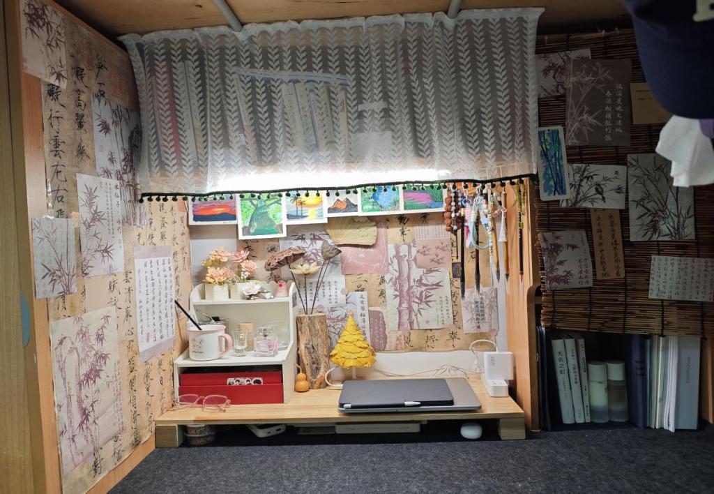 其二为个性张扬的“创意派”书桌,手账贴纸、文创摆件、兴趣藏品巧妙点缀,有的融入专业元素展现学科特色,有的以色彩搭配传递生活热爱,这些别出心裁的设计,不仅展现了当代老员工丰富多彩的内心世界,更彰显了蓬勃的创造力与独特的审美追求。