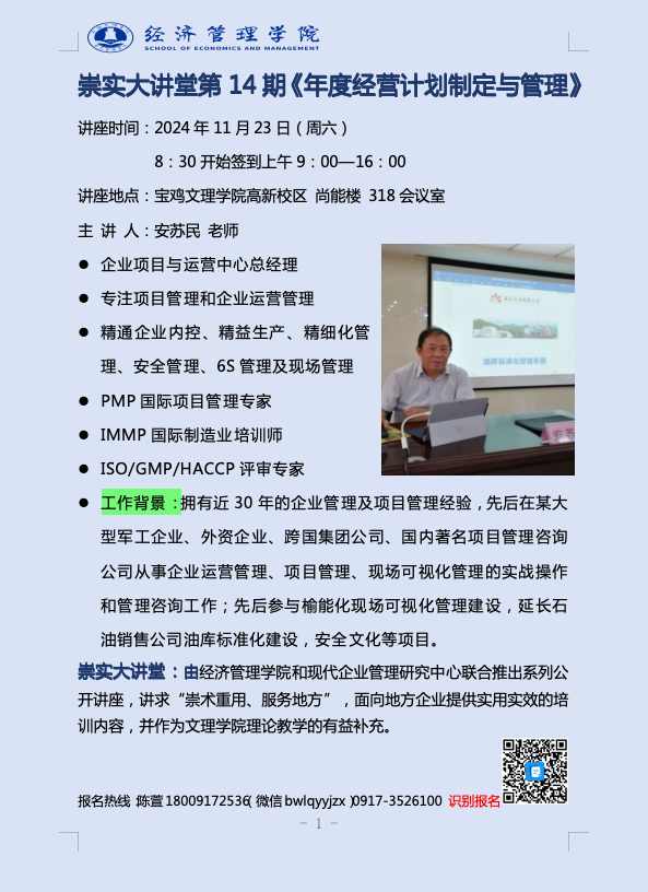 崇实大讲堂第14期《年度经营计划制定与管理》