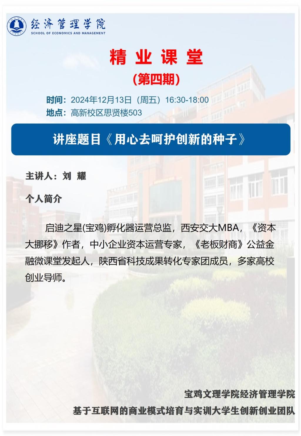 精业课堂—第4期 用心去呵护创新的种子