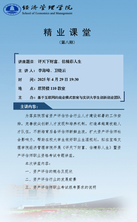 精业课堂—第8期 评天下财富、估精彩人生