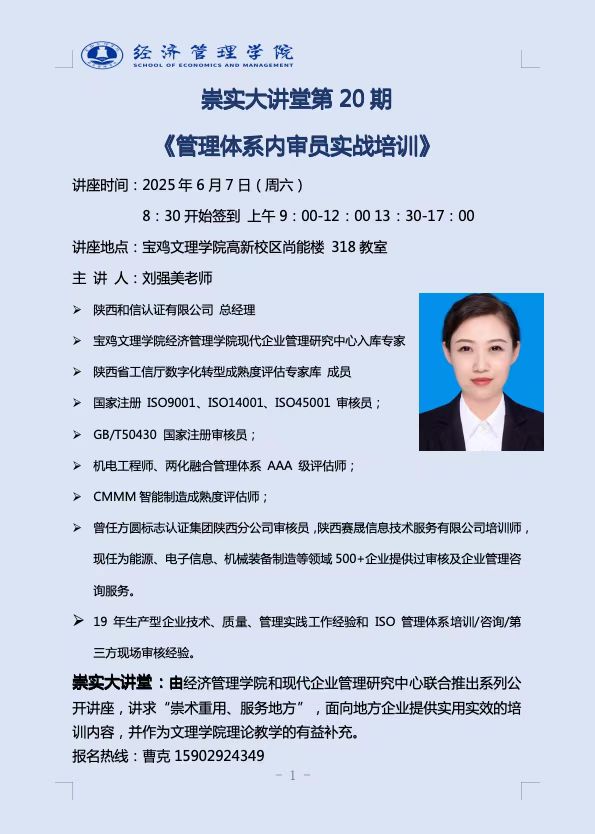 崇实大讲堂第20期《管理体系内审员实战培训》