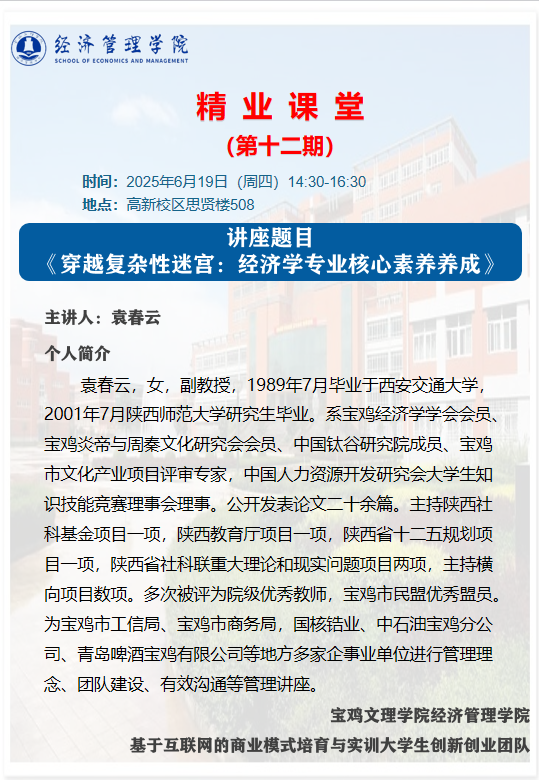 精业课堂—第12期 穿越复杂性迷宫:经济学专业核心素养养成