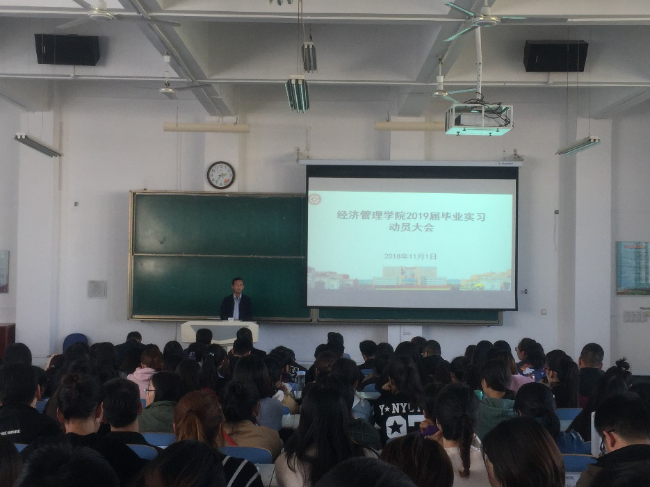 第一阶段,刘晓科做2019届毕业实习动员讲话,从实习的必要性、时间安排、主要形式、实习单位情况和实习要求等五个方面做了介绍,他强调,毕业实习是大学阶段最为重要的学习环节,是员工步入社会前的练兵和演习,希望大家高度重视,同时要求广大实习生要遵守实习单位纪律、切实重视生命安全。