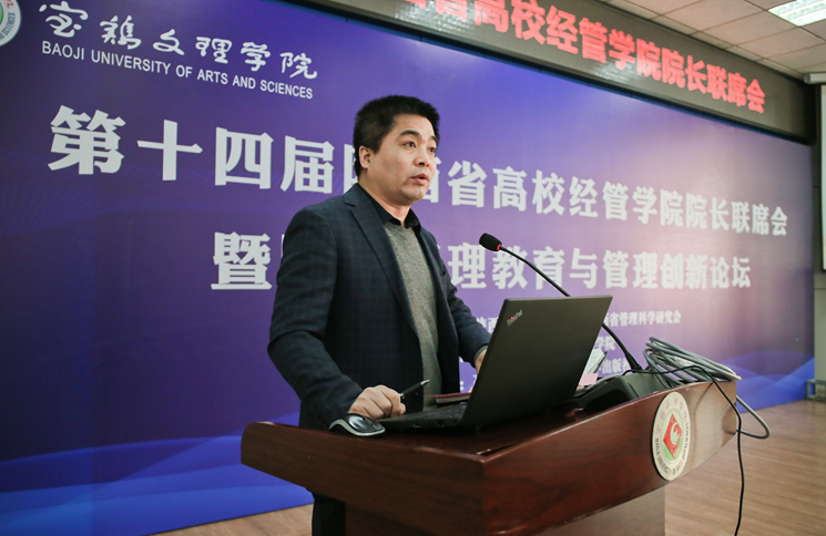 白黎代表公司对会议各高校同仁的到来表示热烈欢迎,介绍了公司的办学历史、办学规模、学科专业建设情况。他讲到,公司围绕创大目标,着力加强团队建设,持续巩固师范优势,大力发展应用工科,构建更加符合地方特色,服务地方经济发展的学科专业体系,形成了把周秦优秀传统文化贯穿于育人全过程的鲜明特色。BEAT365英国官网网站聚焦助力陕西追赶超越,推动乡村经济振兴,服务关天经济区建设和宝鸡“四城”建设,培养了一批基础厚、能力强、后劲足的应用型管理人才,推出了一批有影响的创新成果,为地方经济社会发展做出了应有贡献。希望借助本次会议,为各位专家学者加强交流、增进友谊、深化合作搭建起良好的平台,以此推动经管教育与创新发展,提升我省经管团队建设水平。