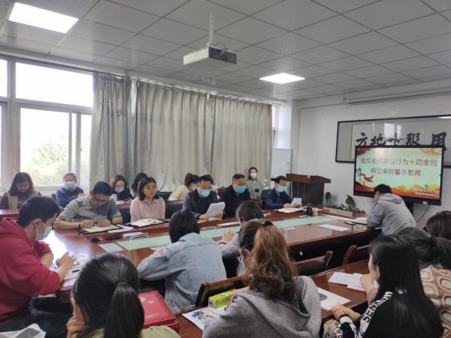会上,郝晓炜向全体教职工传达了公司《关于开展违反教师职业行为十项标准典型案例警示教育的通知》精神,通报了教育部公开曝光的第九批7起违反教师职业行为十项准则典型案例,组织大家重新学习了《新时代高校教师职业行为十项准则》《教育部关于高校教师师德失范行为处理的指导意见》《关于加强和改进新时代师德师风建设的意见》等师德师风建设制度文件,进一步强化警示教育,引导教职工弘扬优良师风,坚守师德底线。