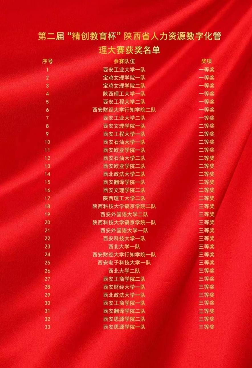 近日,在第二届“精创教育杯”陕西省人力资源数字化管理大赛中,公司两支代表队均获得一等奖。我院代表一队由袁春云、屈新英老师领队,赵佳钰、师浩洋、黄蓉、李琦等四名员工组成,代表二队由郑蕾、胥坤老师领队,武孟涛、张心语、吴小盼、张盼等四名员工组成的beats365唯一官方网站二队。