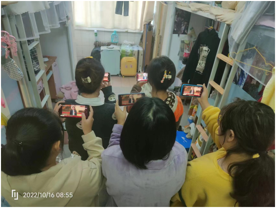 全体教职工在思贤楼507教室集体收看,部分员工代表在尚能楼318室集体收看,全院其他员工在宿舍线上收看。在近两小时的现场直播中,广大师生始终全神贯注,边聆听边思考边记录,真正融入到党的二十大盛会召开的热烈氛围中。