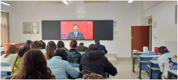党的二十大开幕会盛况,在全院师生中引起了强烈的反响,大家一致认为,习近平总书记的报告高屋建瓴,博大精深,思想深刻,令人鼓舞,令人振奋。报告全面回顾了过去五年的工作和新时代十年的伟大变革,开辟了马克思主义中国化时代新境界,强调新时代新征程中国共产党的使命任务,提出全面建成社会主义现代化强国的战略安排,对鼓舞和动员全党全军全国各族人民坚持和发展中国特色社会主义、全面建设社会主义现代化国家、全面推进中华民族伟大复兴具有重要意义。师生表示,一定要深入学习深刻领会党的二十大精神,全面准确把握党的二十大召开的伟大意义和党的二十大报告的深刻内涵,用党的二十大精神武装头脑、指导实践、推动学习工作,坚定信心、同心同德,埋头苦干、奋勇前进,为全面建设社会主义现代化国家、全面推进中华民族伟大复兴而团结奋斗。( 文/孟蕾 审核/郝晓炜)