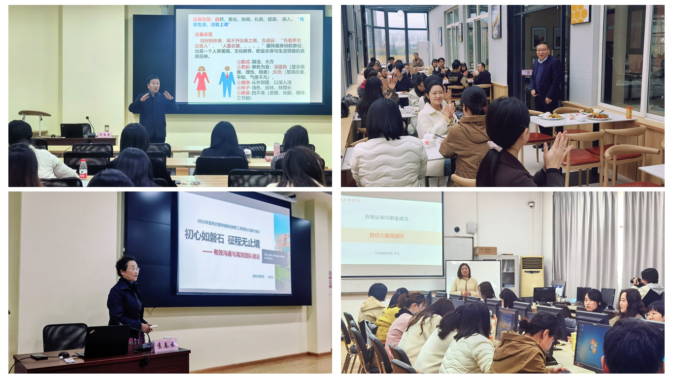 培训邀请公司党委宣传部部长冯飞龙教授、公司管理系袁春云副教授、芦蕊副教授分别作了主题为《高校青年教师师德师风建设与行为礼仪规范》《“初心如磐石,征程无止境”有效沟通与高效团队建设》《胜任力素质测评》的报告。