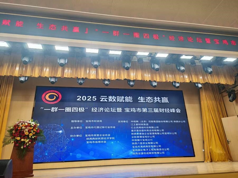 本次峰会多位专家围绕“云数赋能 生态共赢”主题,发表了精彩纷呈的演讲,带来了一场丰富的财经知识盛宴,助力宝鸡市财经领域的交流与发展。江之都财税集团战略合作导师黄健鑫分享了《股权顶层设计与员工激励》;亿企赢业财融合专家高婧琦进行了《AI驱动 合规制胜》主题课程分享;财税小镇总发起人何堂利阐述了《民营企业与财税机构经营破局之道》;中税网数智化中心总经理贺晓宁带来了《人工智能和财税融合应用(deepseek、智税宝)》的专题分享。