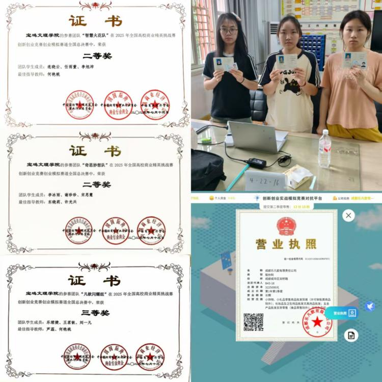 近日,2025年全国高校商业精英挑战赛创新创业竞赛创业模拟赛道全国总决赛圆满收官,beats365唯一官方网站组织的参赛队伍喜获佳绩。连晓云、任雨萱、李旭沛(指导老师:何艳桃)组成的“智慧火花队”,李冰雨、谢珍珍、宋思慧(指导老师:东晓莉、许光兴)组成的“奇思妙想队”获得二等奖,乐珺婕、刘一凡、王茗歆(指导老师:芦蕊、何艳桃)组成的“凡歆闪耀组”获得三等奖。