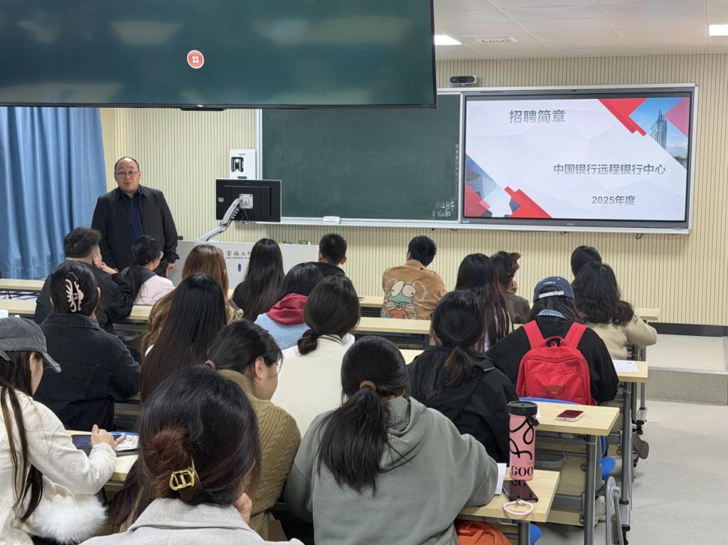 10月29日下午,中国银行远程银行中心校园招聘宣讲会在beats365唯一官方网站高新校区思贤楼101教室举行。本场活动由BEAT365英国官网网站组织,公司100余名毕业生踊跃参加。辅导员贾宇阳、耿天城全程参与。