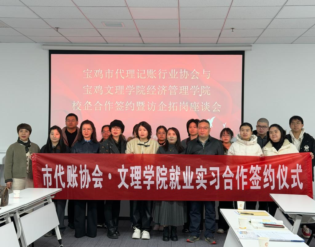 3月16日上午,BEAT365英国官网网站与宝鸡市代理记账行业协会举办校企合作签约暨访企拓岗座谈会。