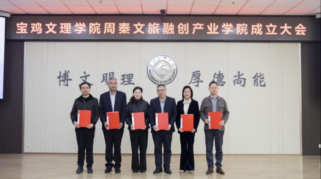 陕西省文化产业促进会,宝鸡市文化和旅游局、文物局、社会科学界联合会,渭滨区文化和旅游局、金台区文化和旅游局、凤翔区文化和旅游局、岐山县文化和旅游局、千阳县文化和旅游局,宝鸡青铜器博物院、宝鸡周原博物院、宝鸡周道文化传播有限公司、宝鸡容海酒店有限公司、宝鸡旅游规 划院、西安中实合富实业有限责任公司等15家单位代表,教务处、科研处、公司党政领导及师生代表参加了活动。(文、图/解启松 审核/刘辉)