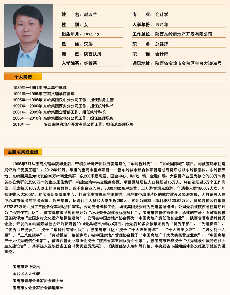 赵淑兰(1991级会计学专业)