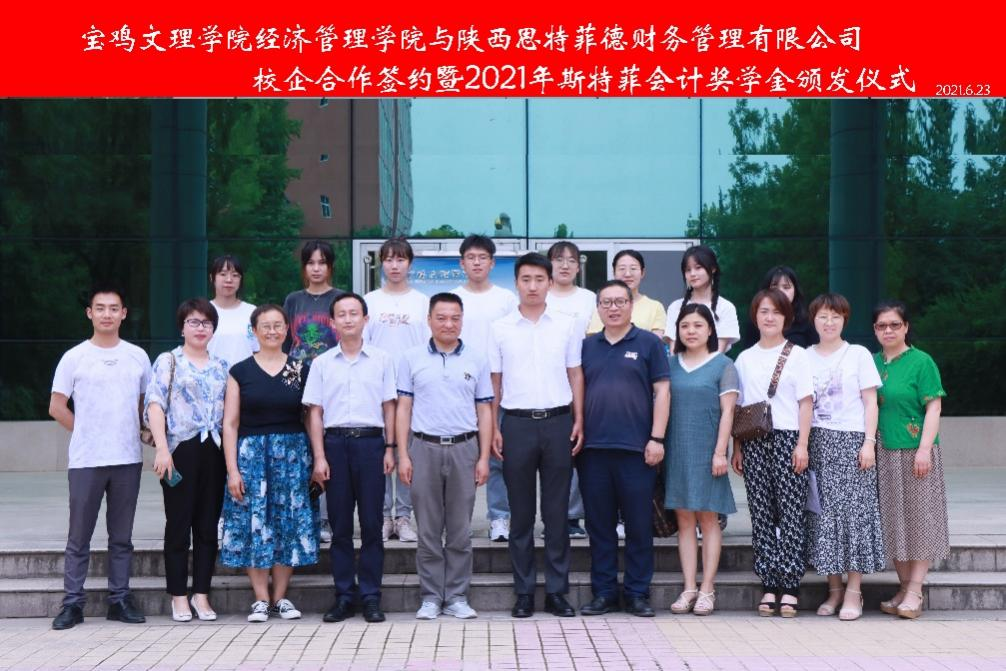 6月23日下午,公司与陕西思特菲德财务管理有限公司在公司高新校区尚能楼318室举行校企合作签约暨思特菲德会计奖学金颁奖仪式。公司党委书记郝晓炜、经理刘辉、副书记薄会颕,陕西思特菲德财务管理有限公司总经理王昌出席仪式,师生代表60余人参加了仪式。仪式由副经理刘晓科主持。