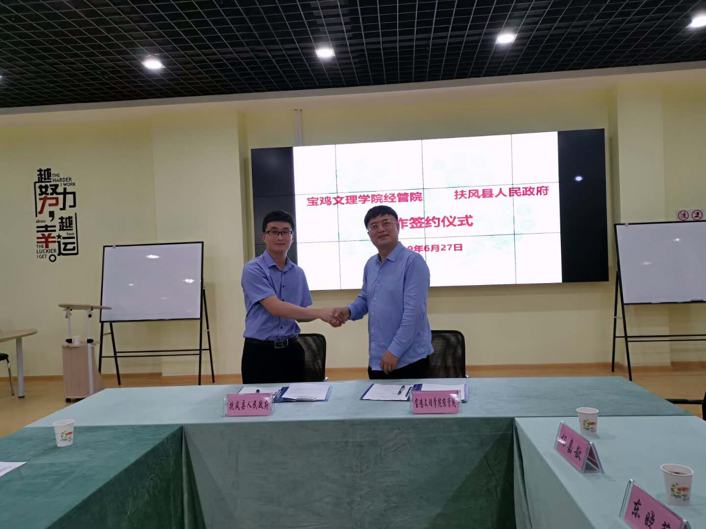 6月27日,公司与扶风县人民政府在公司尚能楼创新创业实验室举行电子商务校地合作协议签署仪式。宝鸡市商务局副局长李小平、扶风县人民政府副县长赵炳震、扶风县电子商务服务中心王丽娟、公司经理张伟峰、副经理刘晓科、工商管理系主任郑蕾以及部分教师代表参加签约仪式。仪式由公司副经理刘辉主持。